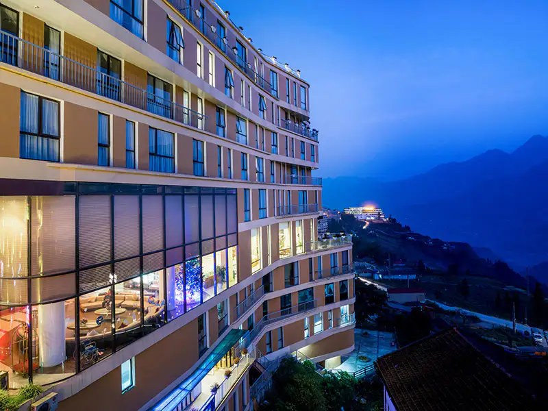 Hotels are standard commercial accommodations in or near Sapa town — ranging from budget guesthouses ($15/night) to luxury boutique resorts ($150+/night). They offer private rooms, consistent amenities, and daily housekeeping.